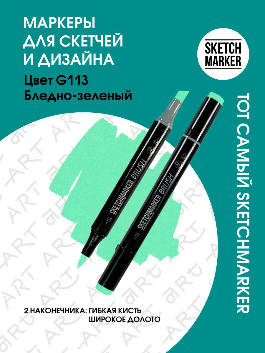 Двусторонний заправляемый маркер SKETCHMARKER Brush Pro на спиртовой основе для скетчинга, цвет: G113 Бледно зеленый информация: