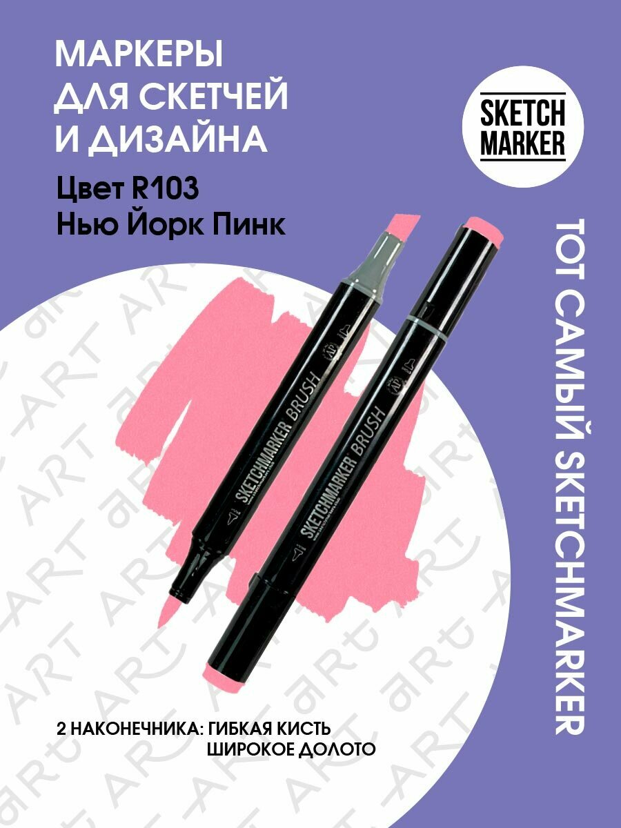 10 цен на Двусторонний заправляемый маркер SKETCHMARKER Brush Pro на спиртовой основе для скетчинга, цвет: R103 Нью Йорк Пинк