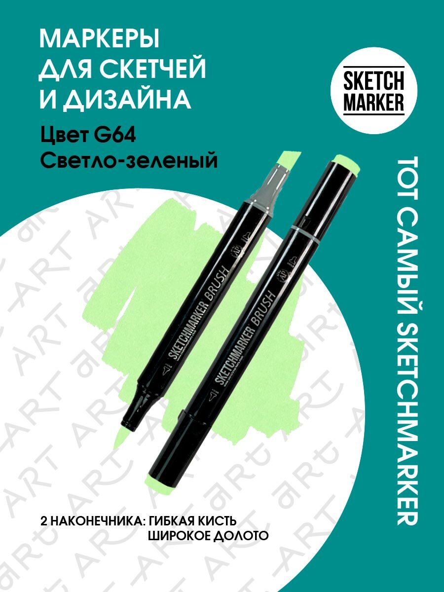 Двусторонний заправляемый маркер SKETCHMARKER Brush Pro на спиртовой основе для скетчинга, цвет: G64 Светло зеленый информация: