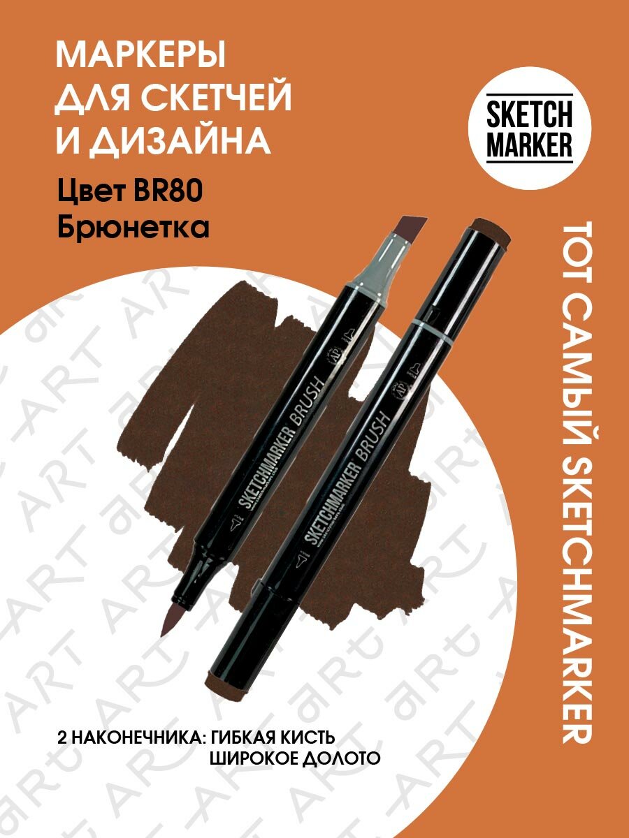 Двусторонний заправляемый маркер SKETCHMARKER Brush Pro на спиртовой основе для скетчинга, цвет: BR80 Брюнетка информация: