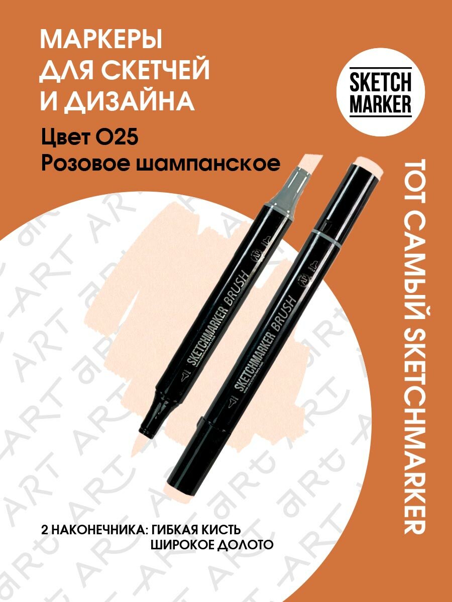 Двусторонний заправляемый маркер SKETCHMARKER Brush Pro на спиртовой основе для скетчинга, цвет: O25 Розовое шампанское информация: