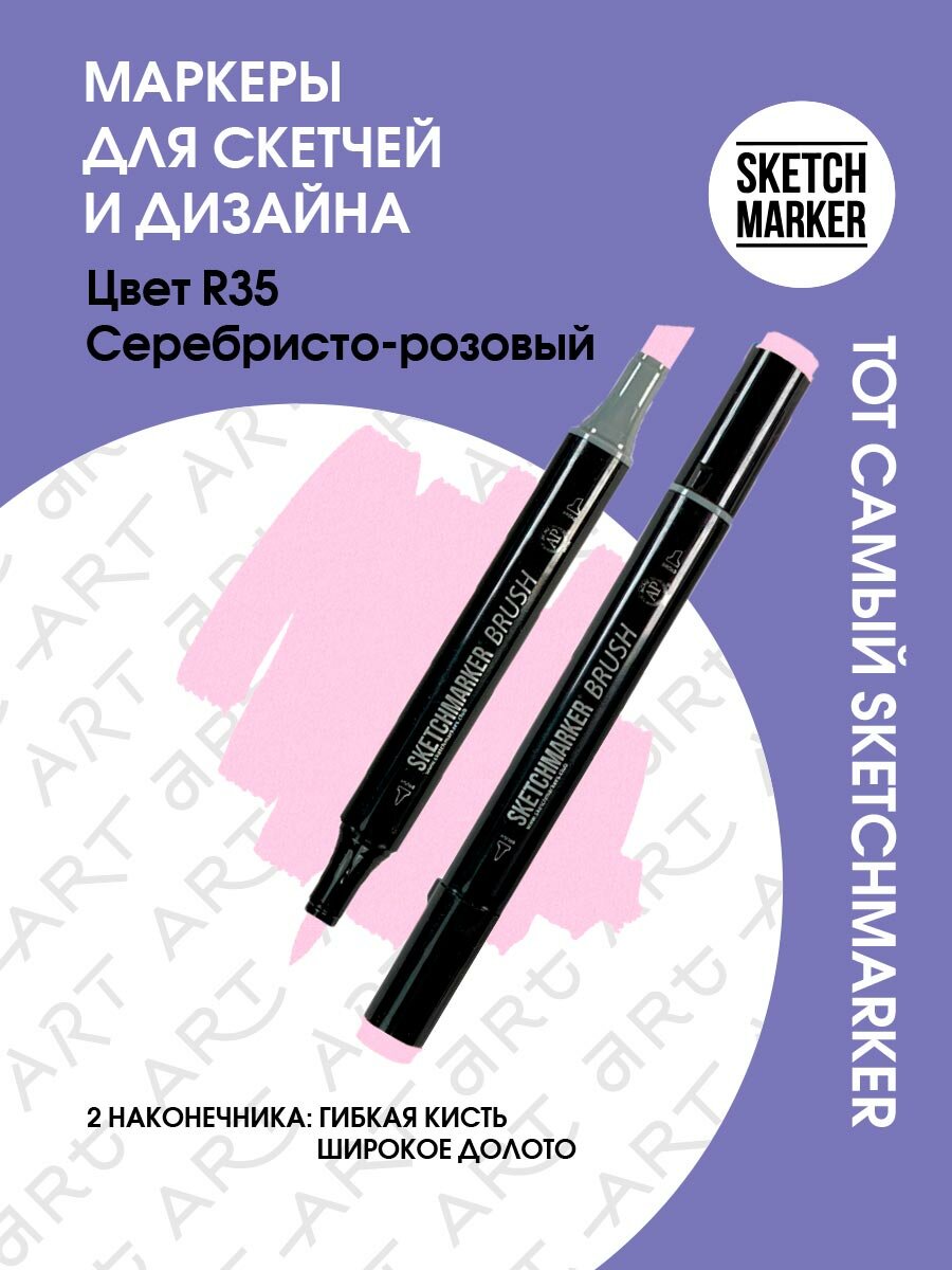 10 цен на Двусторонний заправляемый маркер SKETCHMARKER Brush Pro на спиртовой основе для скетчинга, цвет: R35 Серебристо розовый