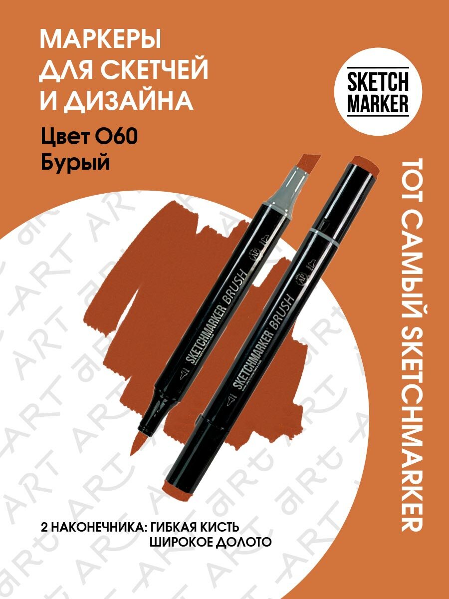 Двусторонний заправляемый маркер SKETCHMARKER Brush Pro на спиртовой основе для скетчинга, цвет: O60 Бурый информация: