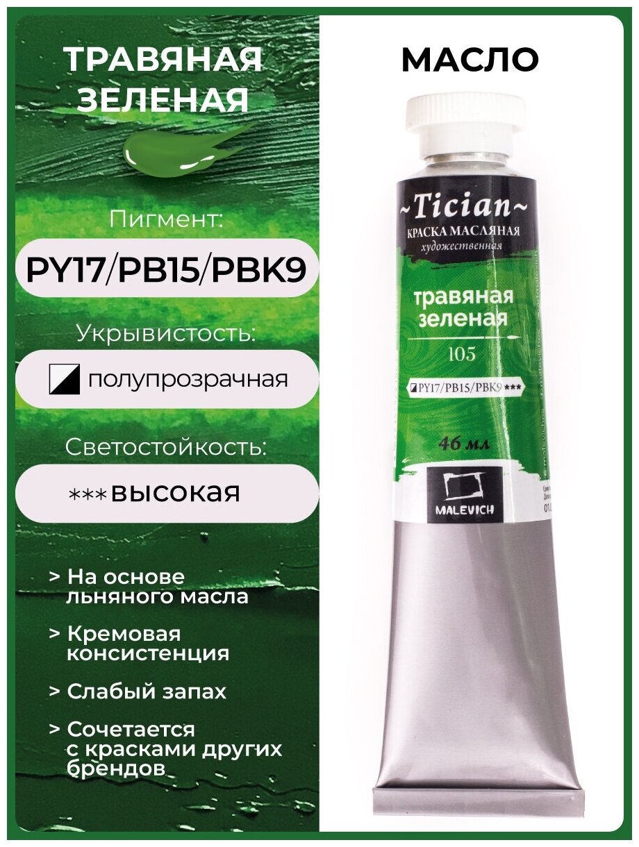 Масляные Малевичъ Масляная краска Tician малевичъ, туба 46мл, 105 Травяная зеленая