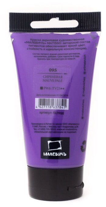 Краска акриловая Малевичъ Matisso, сиреневый, 60 мл информация: