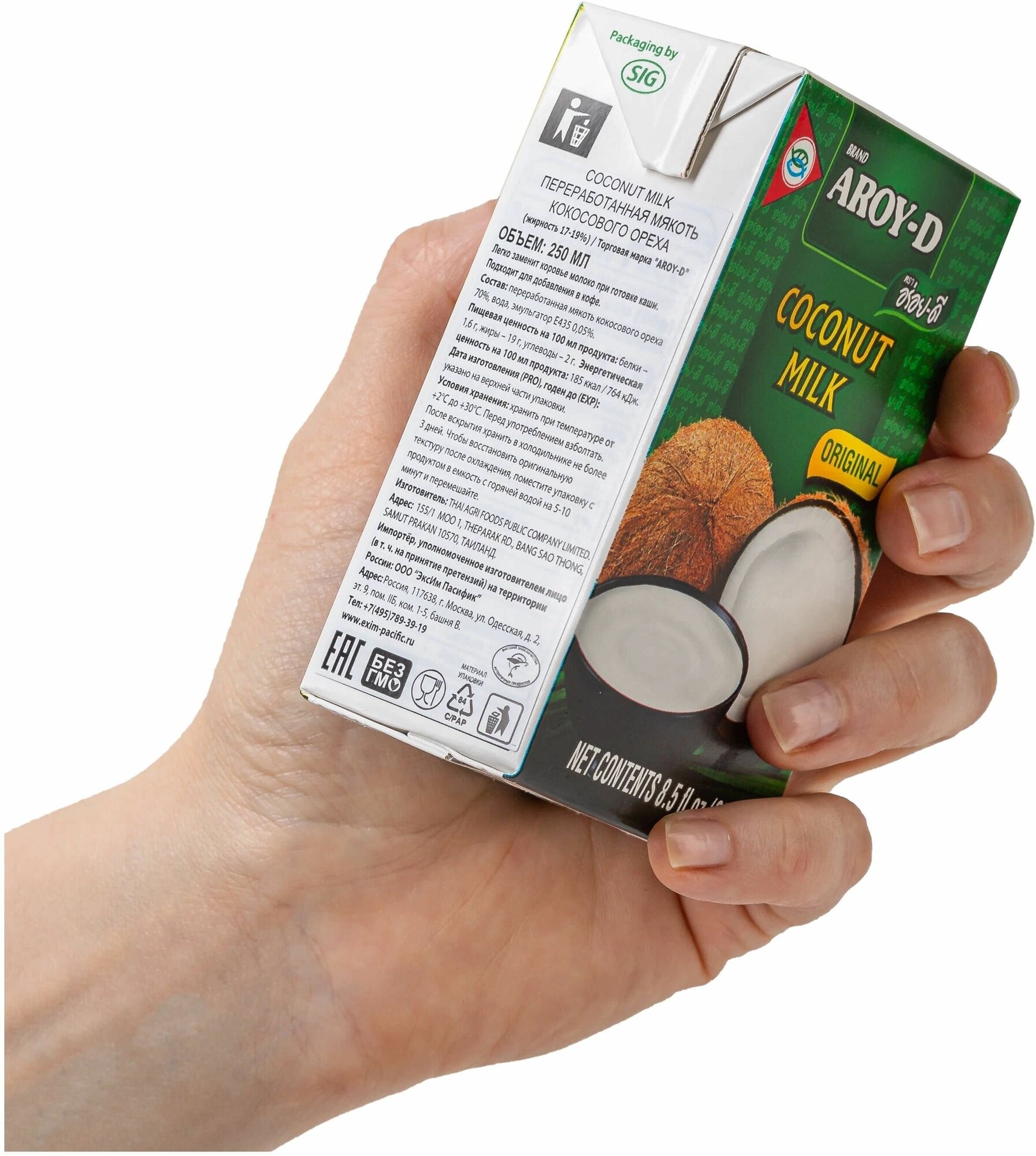 10 цен на Кокосовое молоко AROY-D 70%, Tetra Pak (жирность 17-19%), 250мл х 12шт