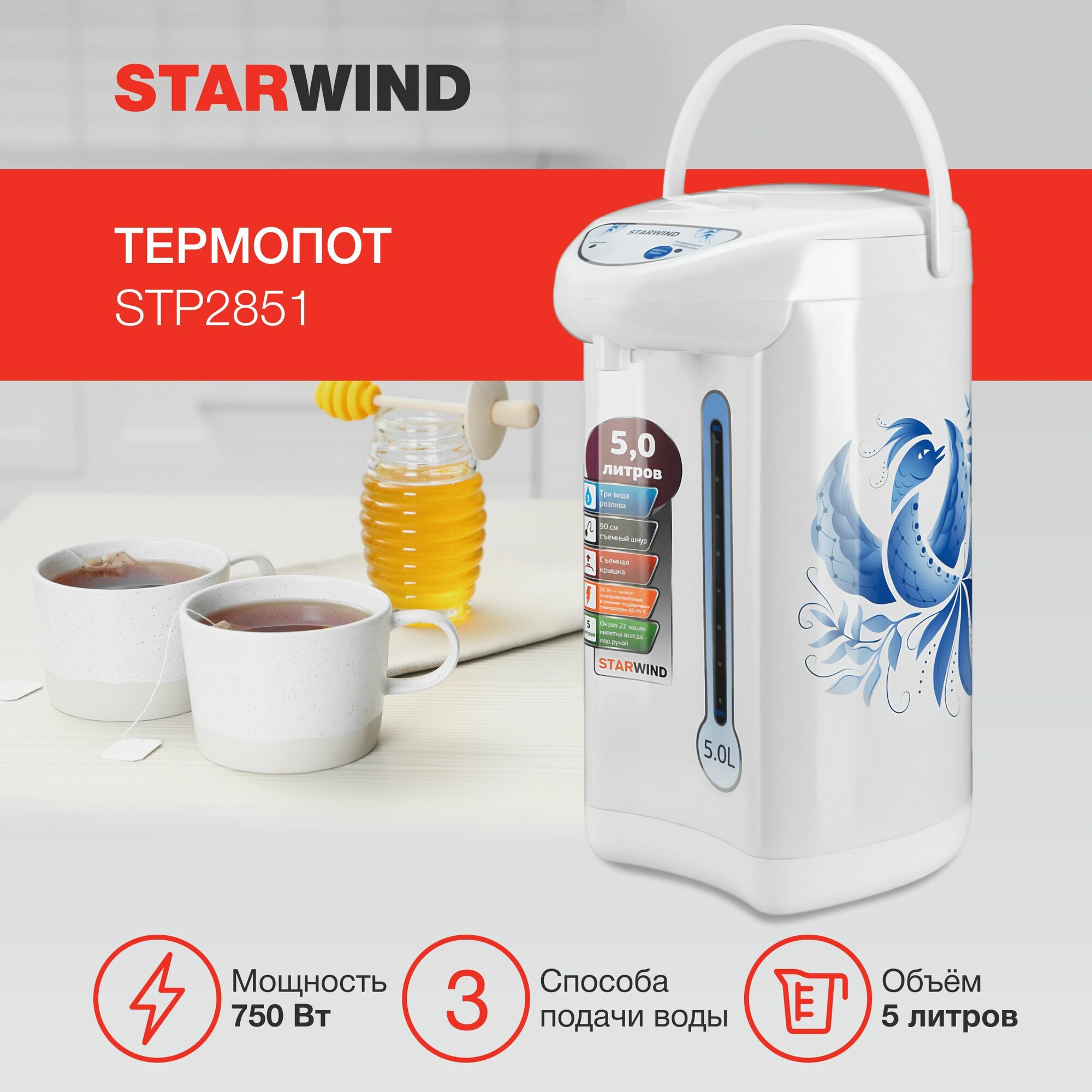 Термопот Starwind STP2851, 5 л, 750 Вт