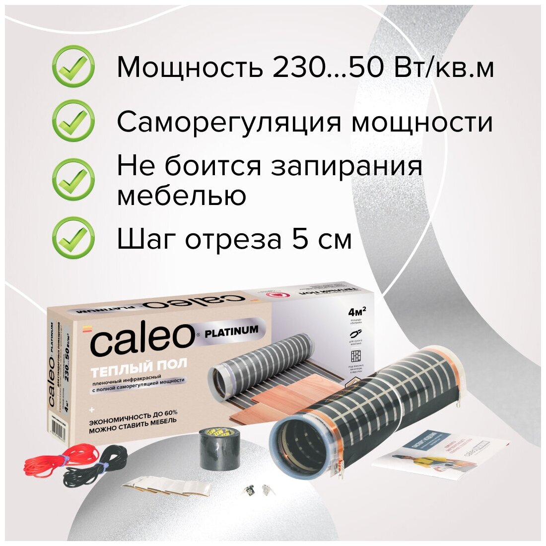 Комплект пленочного теплого пола CALEO PLATINUM 50/230-0,5-6,0м2 с полной саморегуляцией