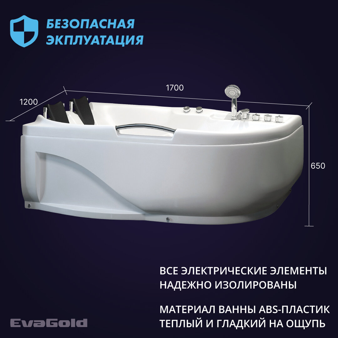 Гидромассажная ванна EvaGold OLB-807 L 120х170 информация:
