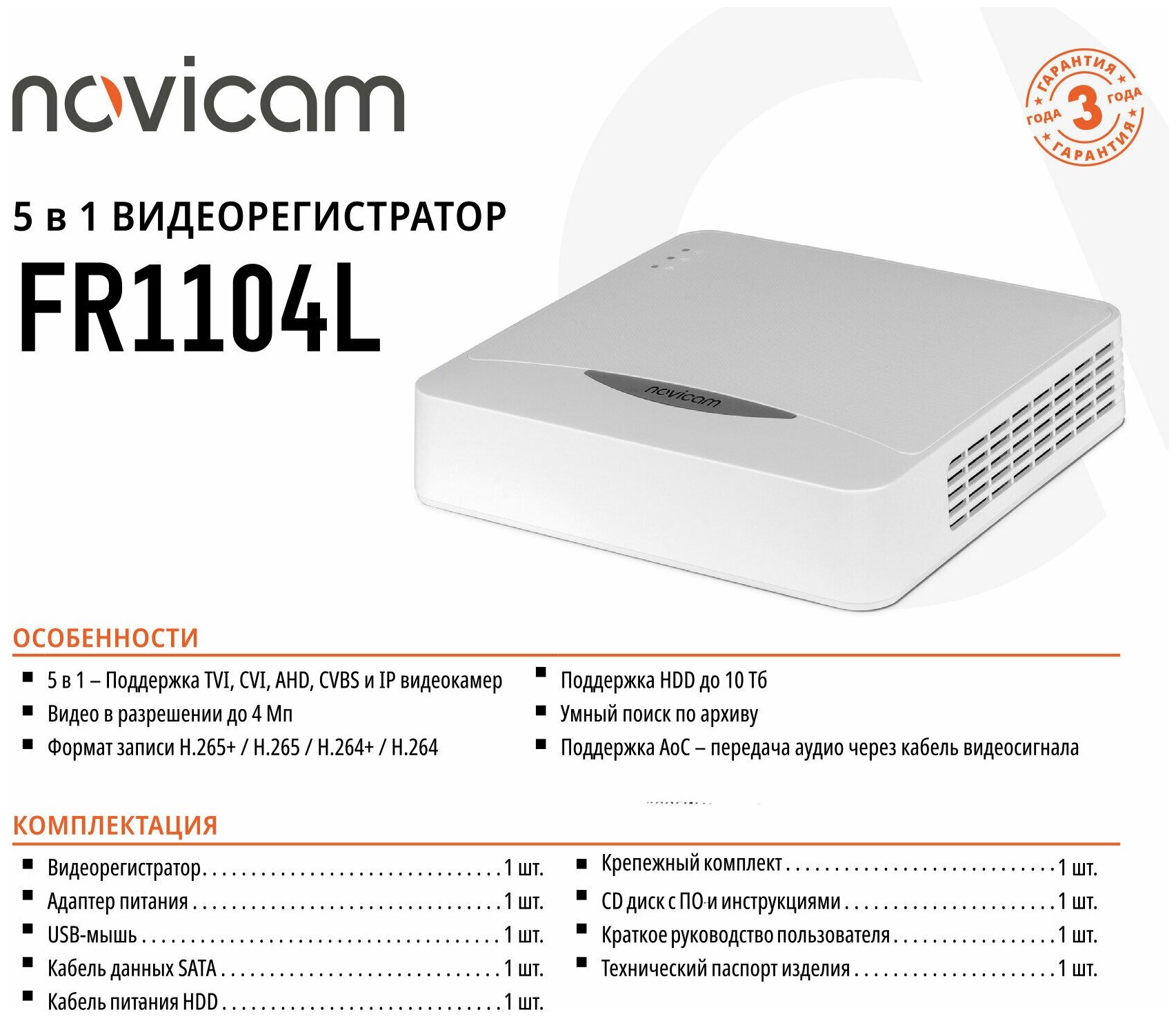 Видеорегистратор для видеонаблюдения Novicam FR1104L информация: