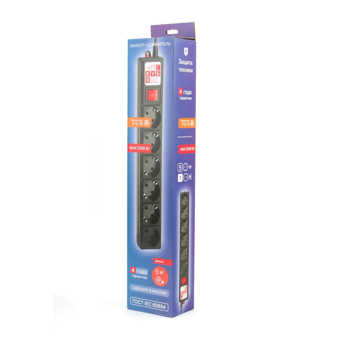 10 цен на Сетевой фильтр Power Cube SPG-MXTR-19 5м 6роз., черный (10А/2,2кВт)