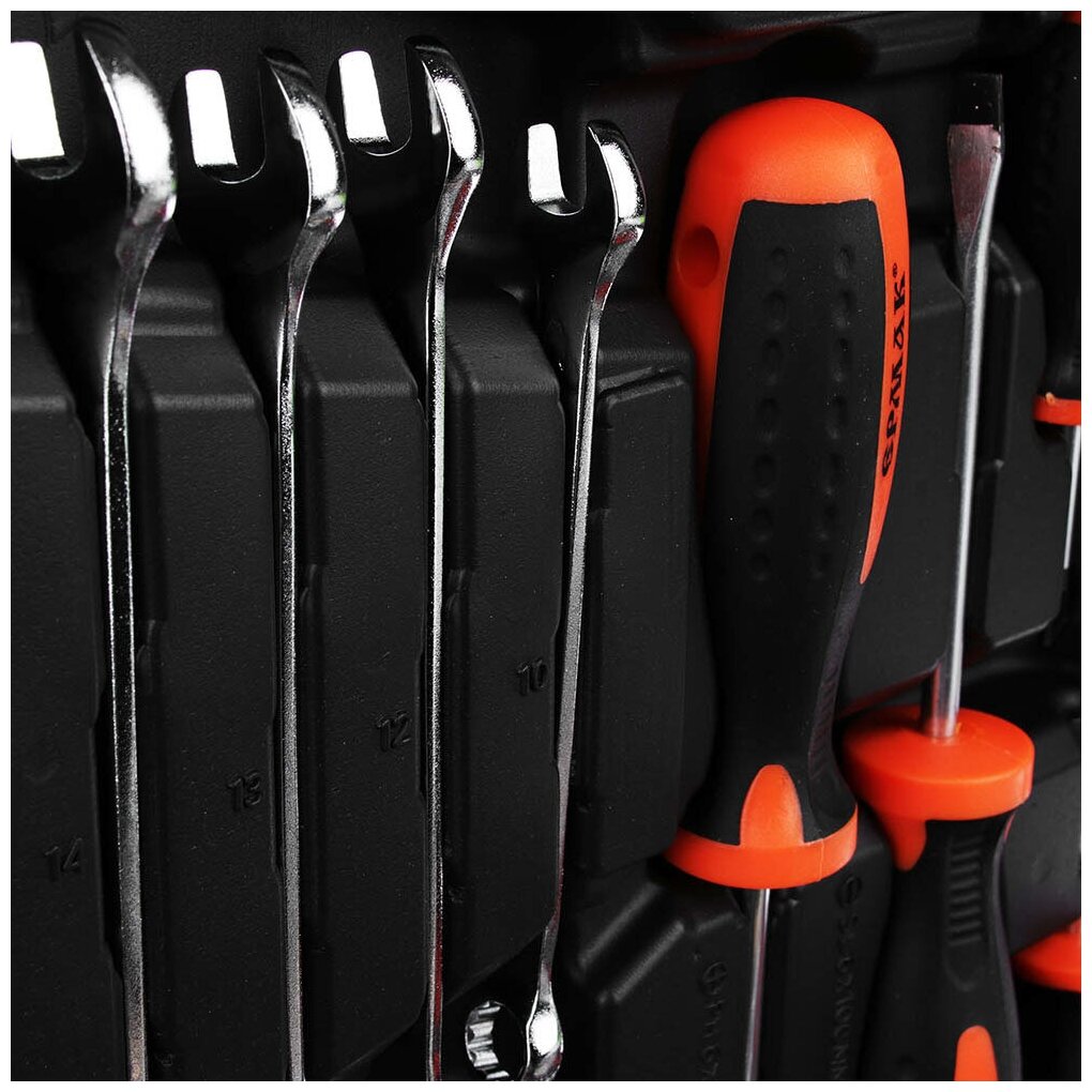 | Инструменты в комплекте | молоток / отвёртки / рукоять для бит / вороток для головок / трещотка / пассатижи / ключи гаечные / ключ переставной гаечный / ключи имбусовые (шестигранные) |