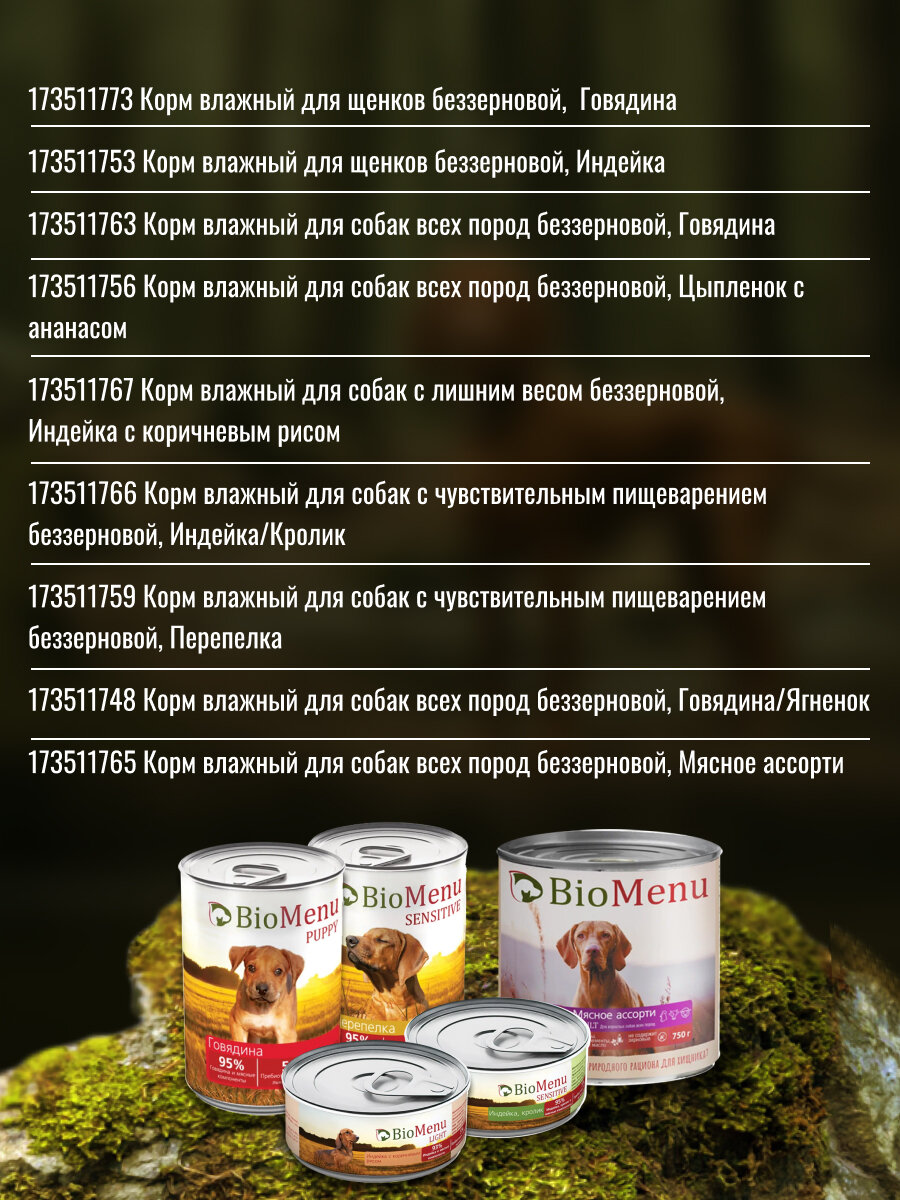 10 цен на BioMenu LIGHT Консервы д/собак Индейка с коричневым рисом 93%-мясо 100гр