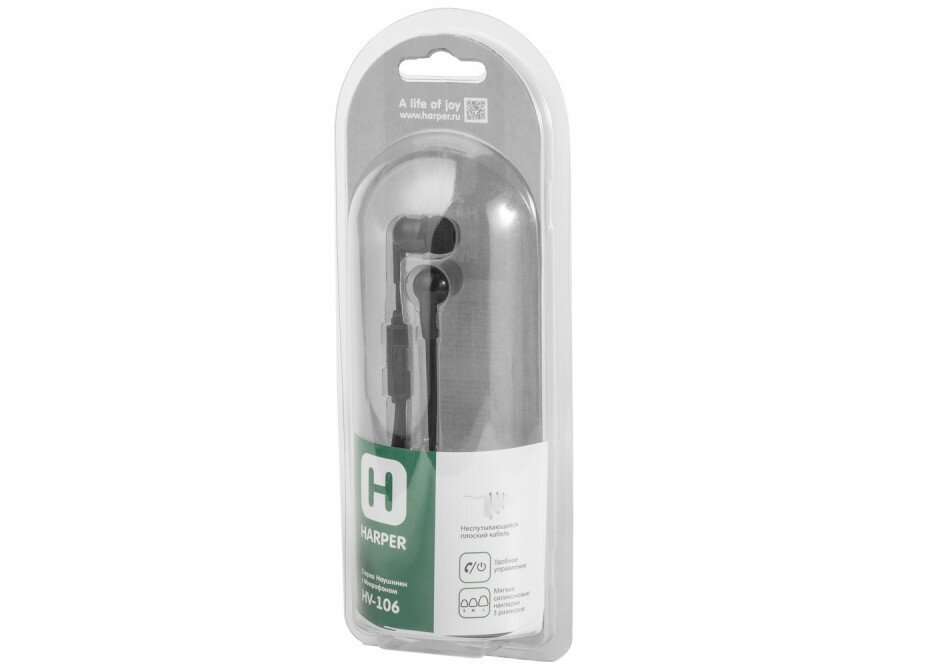 Наушники HARPER HV-106 / Проводные / Внутриканальные с микрофоном / Черные / 20 Гц - 20 кГц / Двухстороннее / Mini-jack / 3.5 мм