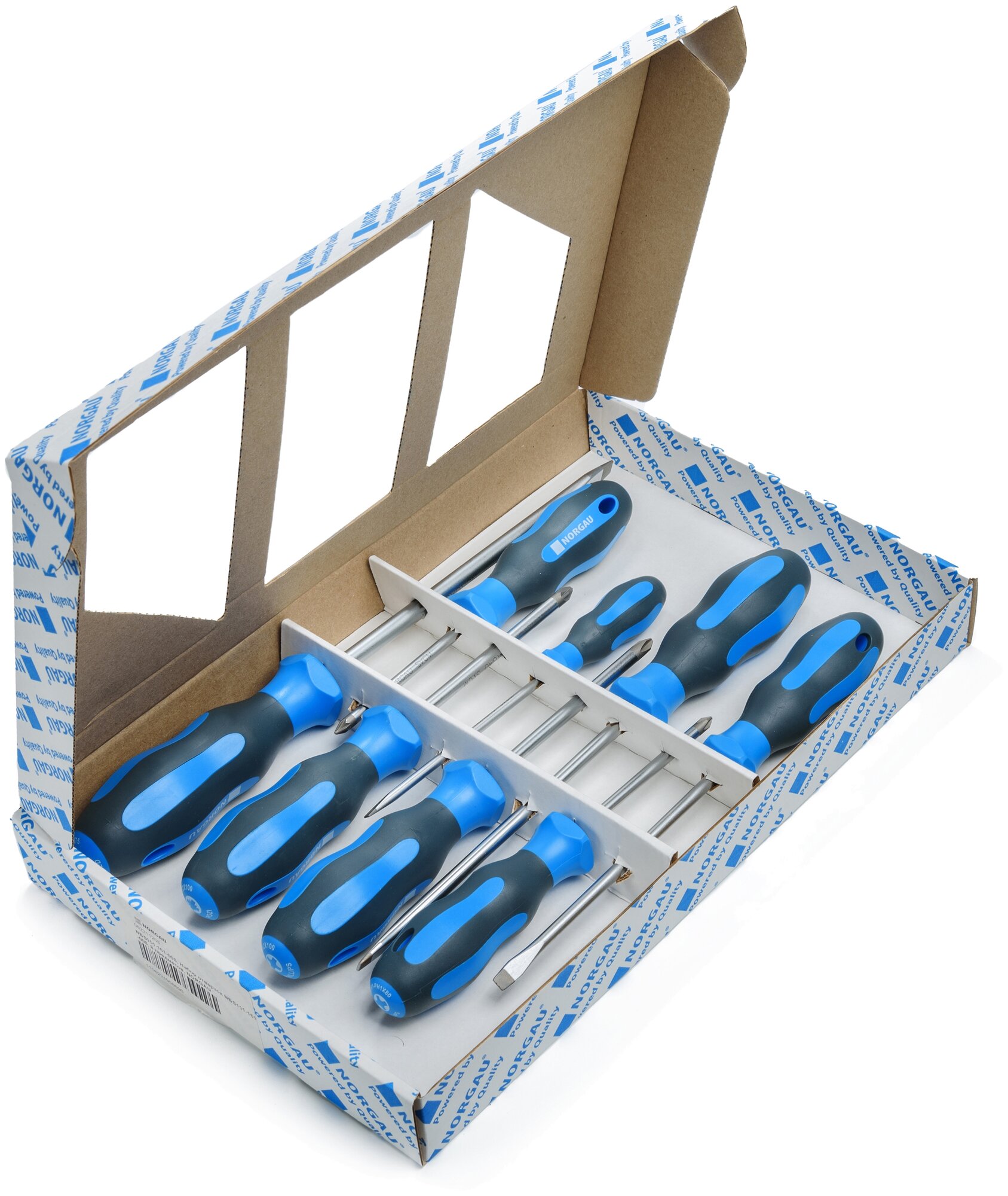 10 цен на Набор крестовых и шлицевых отверток NORGAU Industrial из стали SVCM с двухкомпонентными рукоятками и магнитным жалом, 8 шт