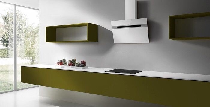 Наклонная кухонная вытяжка LEX MERA 600 WHITE, 60см, отделка: стекло, кнопочное управление, LED лампы, белый.