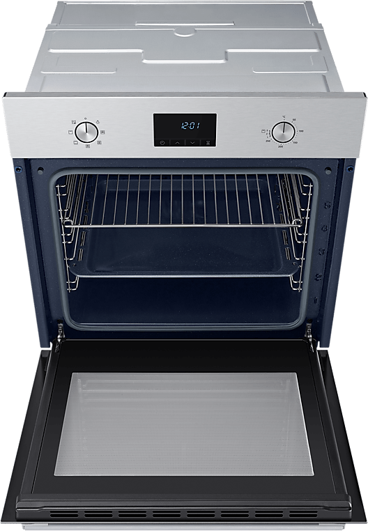 Электрический духовой шкаф Samsung NV68A1110BS/WT, встраиваемый, 68 л, с грилем и конвекцией, утапливаемыми переключателями, таймером и защитой от детей, цвет нержавеющая сталь