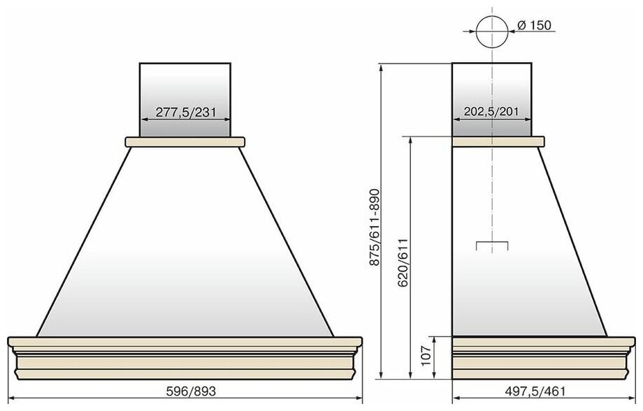 Вытяжка каминная Elikor Вилла Валенсия 90П-650-П3Д, топленое молоко/бук/орех, ползунковое управление [кв ii м-650-90-348]