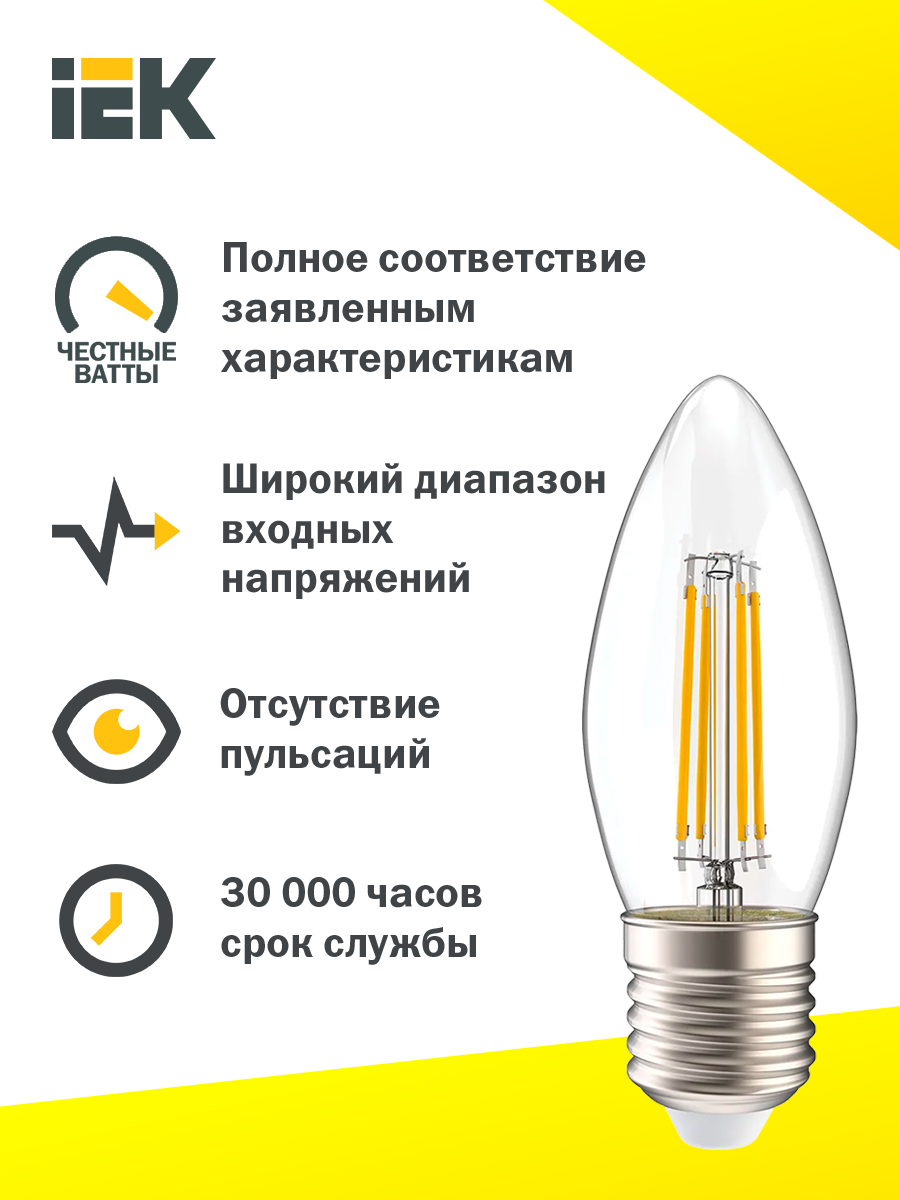 Отзывы на Лампа светодиодная C35 свеча прозр. 5Вт 230В 3000К E27 серия 360°, IEK LLF-C35-5-230-30-E27-CL (10 шт.)