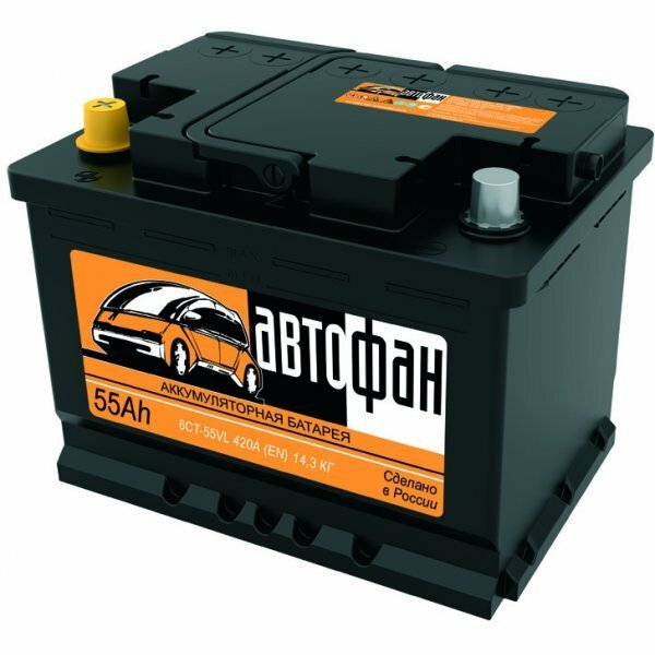 Отзывы на Аккумуляторная батарея автофан 55ah 420A (EN)12B/Ca/Ca прямая полярность