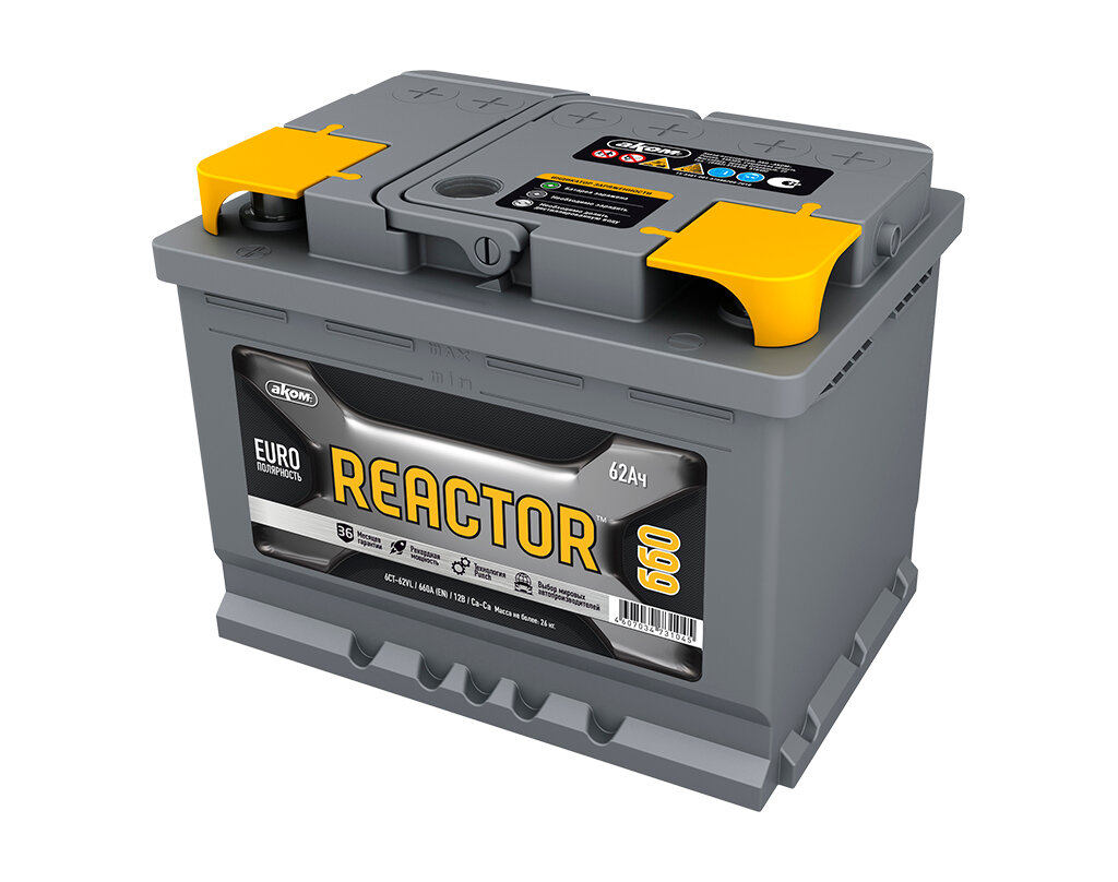 AKOM 4607034730109 Аккумулятор 6СТ- 62 Reactor о.п. (пусковой ток 620А/660А) L2 (AKOM) 11 850 ₽