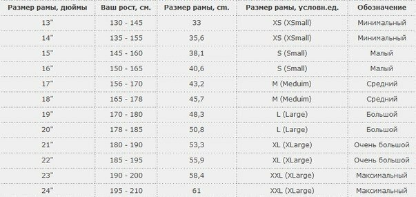 | Размеры рамы | 16" (150-165 см), 18" (165-178 см), 20" (175-185 см) |