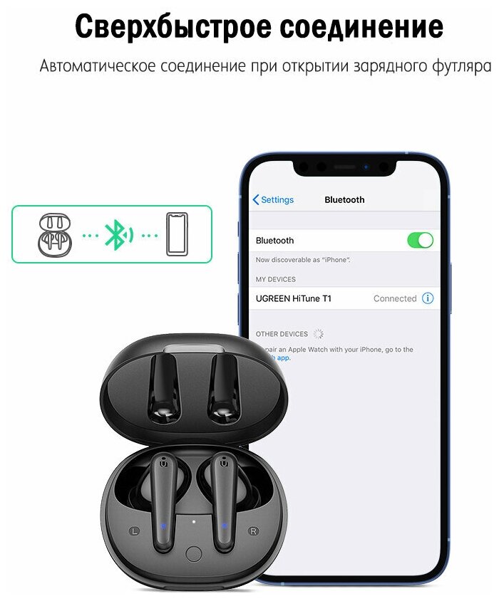 Отзывы на Ugreen WS111 (80651) HiTune T1 TWS black tws внутриканальные наушники
