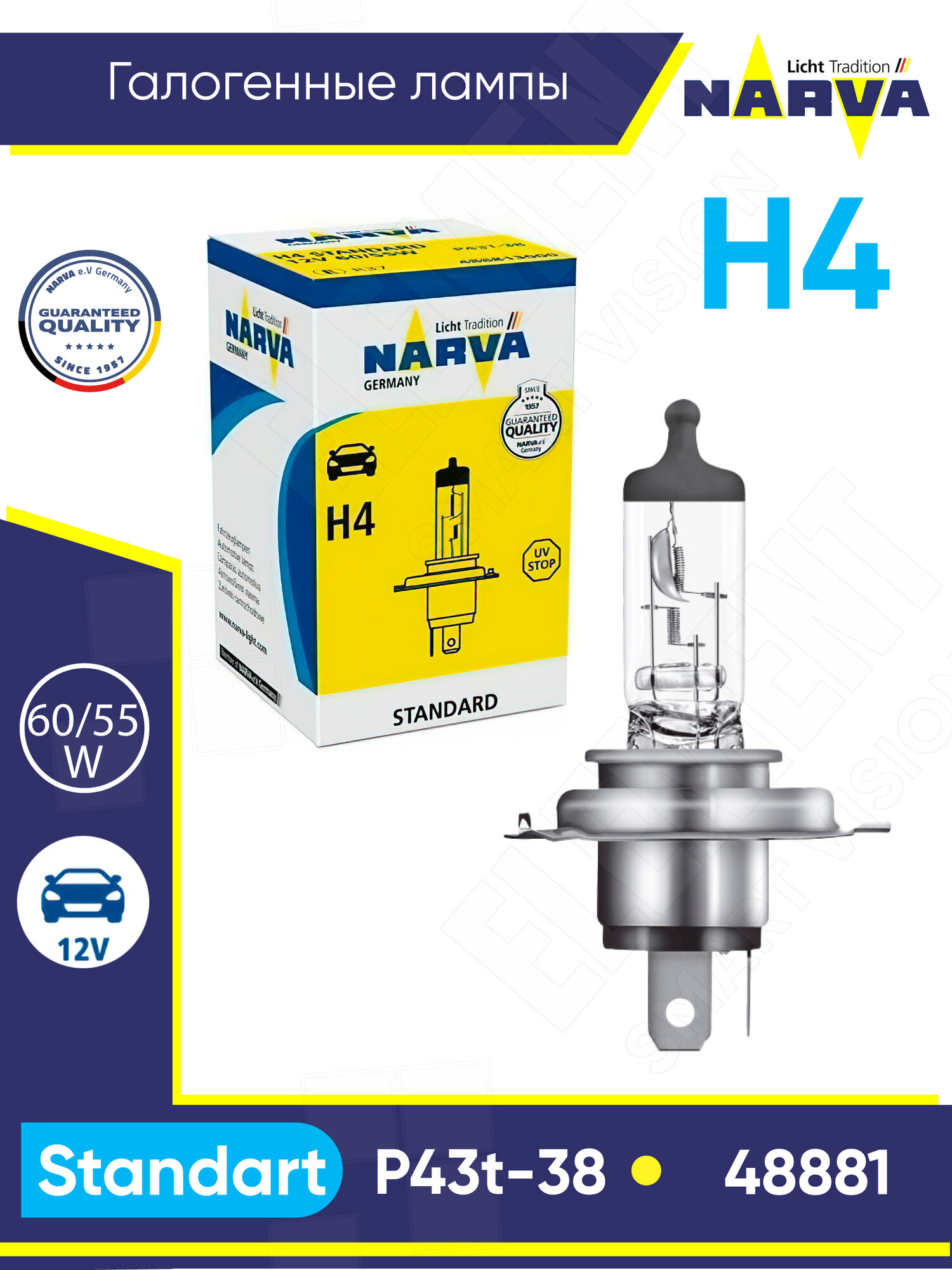 Лампа автомобильная Narva Standard, H4, 12 В, 60/55 Вт, 48881 .