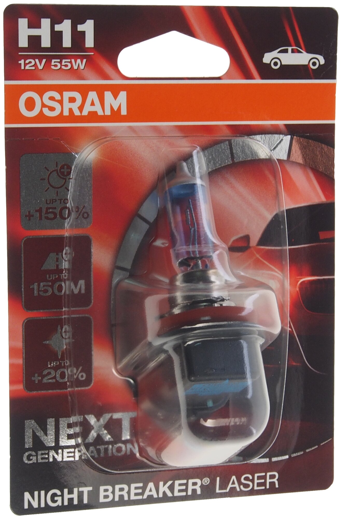 Лампа галогенная Osram H11 55W PGJ19-2+150% Night Breaker Laser 3750K 12V, 64211NLбл информация: