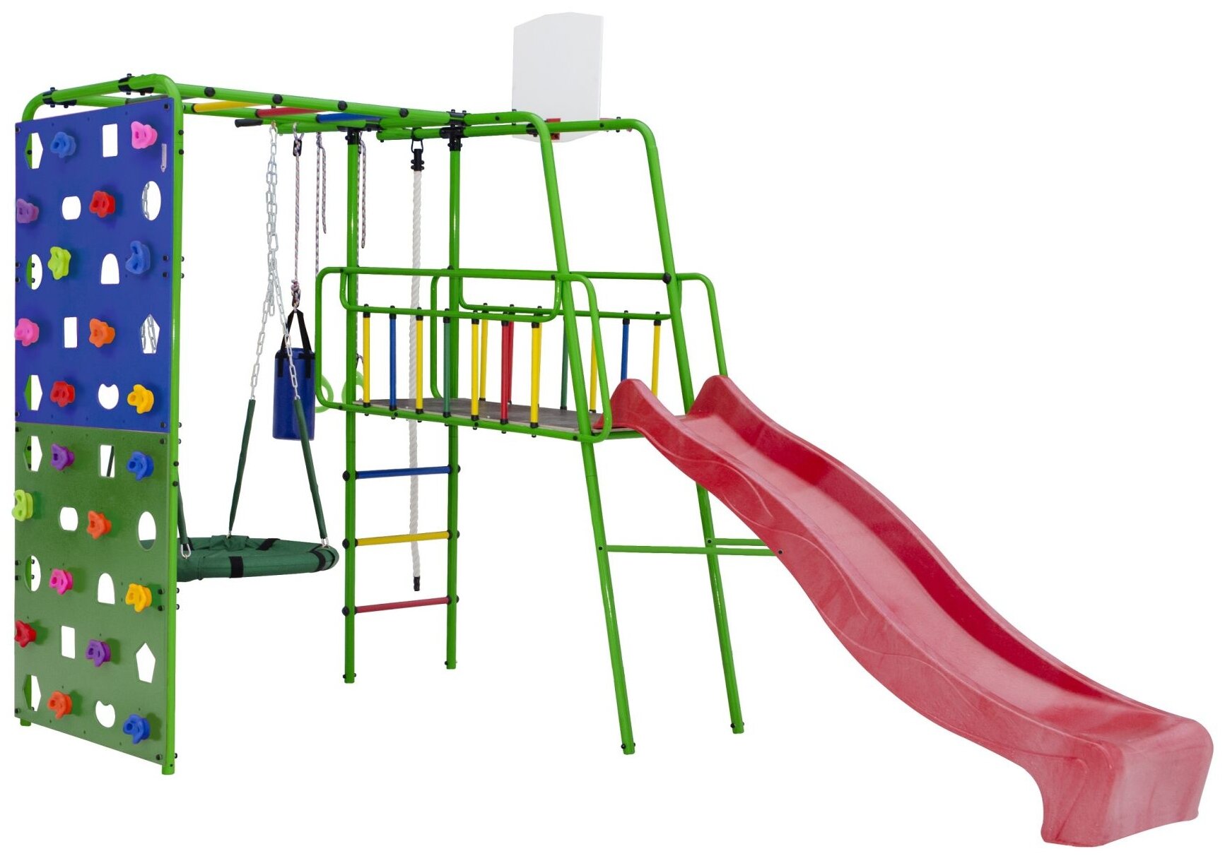| Дополнительная информация | допустимая нагрузка на навесное оборудование: 80 кг; количество горок: 1; количество качелей: 1 |