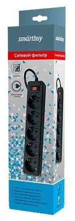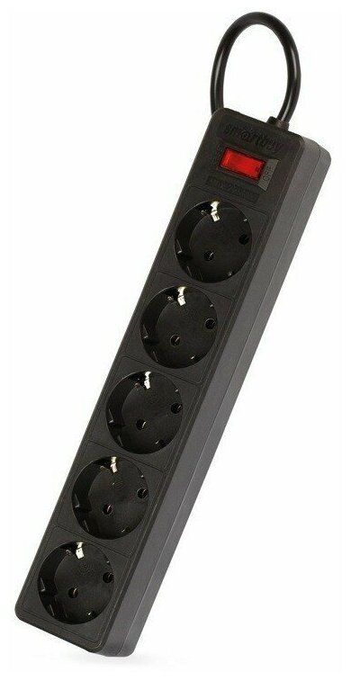 Удлинитель с функцией сетевого фильтра, 10А, 2 200 Вт, 5 розеток, длина 1,8 м, черный, Smartbuy