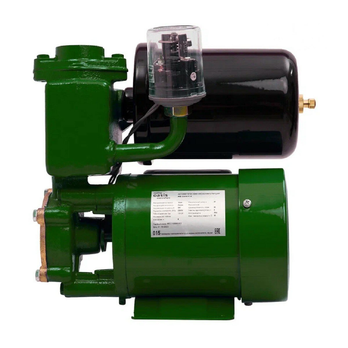 Насосная станция Oasis, 370 Вт, глубина погружения 8 м, 31 м, 1.98 м³/ч, бак 2 л, автомат, MST 33/31С-2