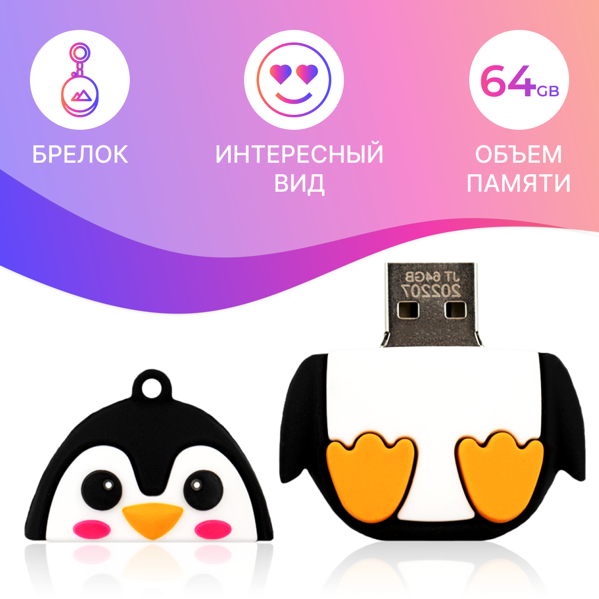Отзывы на Флешка USB 64GB / Оригинальная подарочная флешка ЮСБ 64 ГБ / Флеш накопитель / USB Flash Drive / (Penguin)