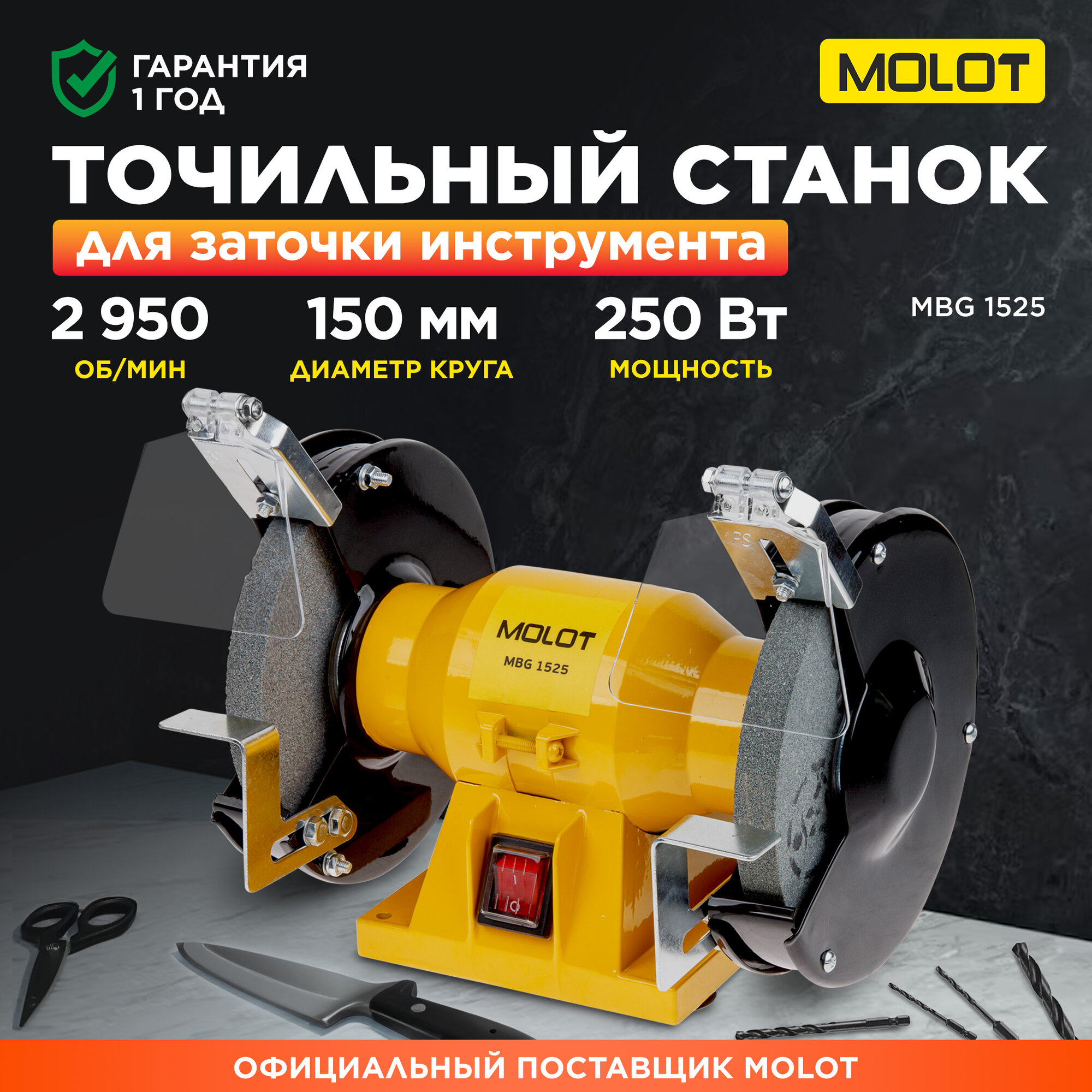 Станок точильный (точило) MOLOT MBG 1525 (MBG152500027) информация: