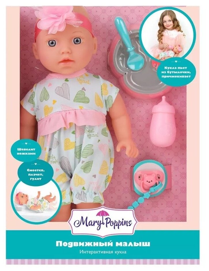 Пупс интерактивный Mary Poppins 35 см, "Подвижный малыш" (451390)