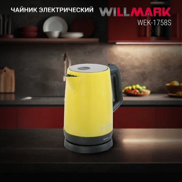 Чайник электрический WILLMARK WEK-1758S 1.7 л, 2.2 кВт, оранжевый 2 108 ₽