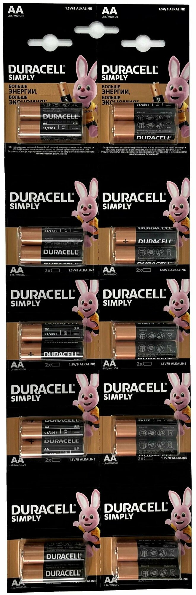 10 цен на Батарейка Duracell AA (LR06, R6, 2А), 20 шт. блистер