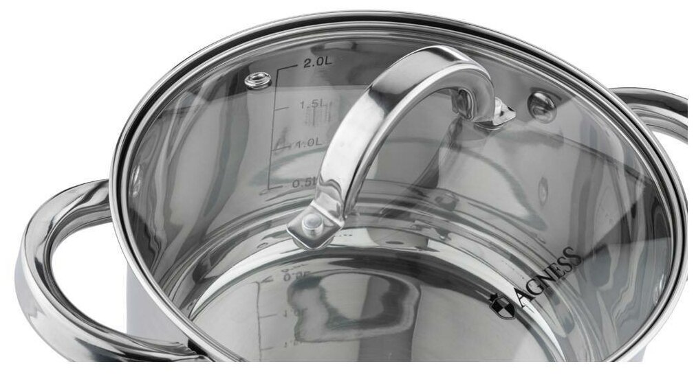 Кастрюля agness classic со стеклянной крышкой 2,3 л. 18x10,5см KSG-914-221