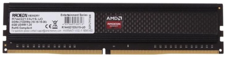 Модуль памяти AMD Оперативная память AMD 4GB DDR4 2133MHz DIMM 288pin CL15 R744G2133U1S-UO информация: