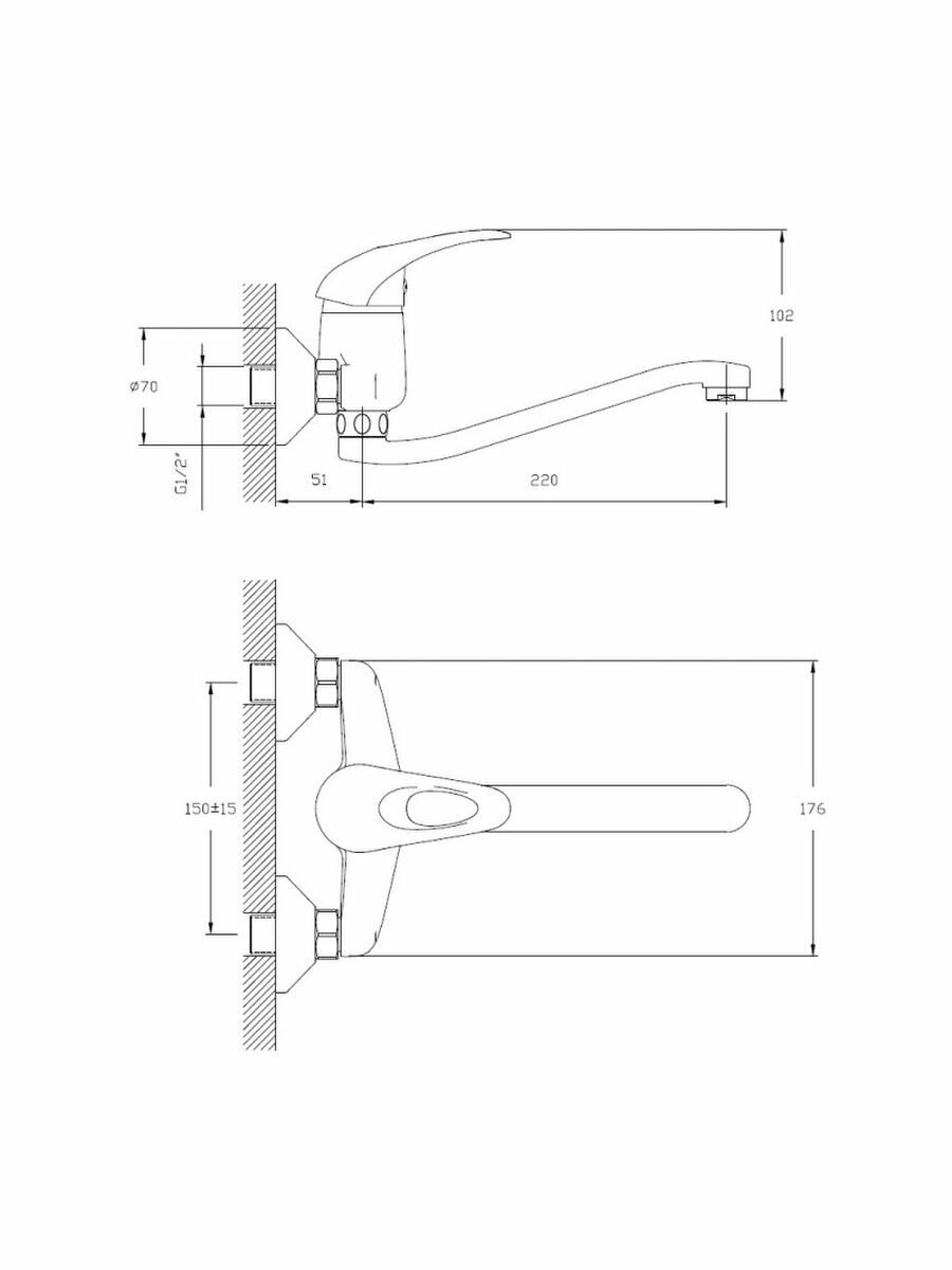Смеситель на раковину настенный Эверест B46-350 с круглым поворотным изливом, кран-буксы 1/2", хром