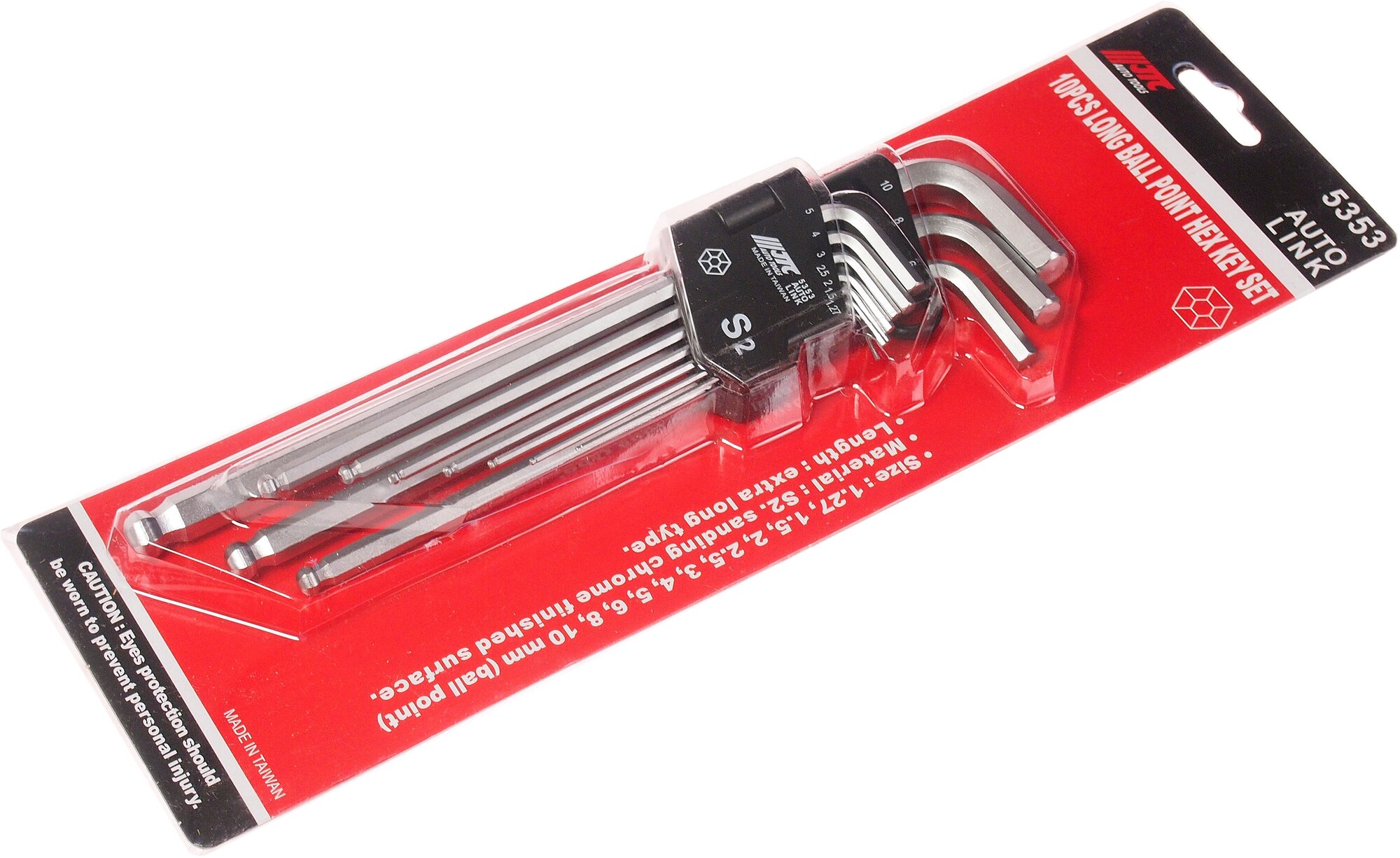 Набор ключей шестигранных 1.27-10мм Г-образных экстрадлинных с шаром 10 предметов JTC-5353