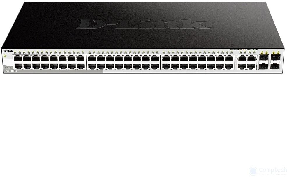 Коммутатор D-Link DGS-1210-52 WebSmart с 48 портами 10/100/1000Base-T и 4 портами 1000Base-X SFP