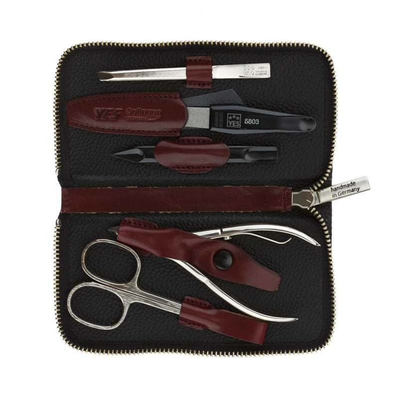 Маникюрный набор YES, 5 пр. Футляр: натуральная кожа, цвет бордово-красный