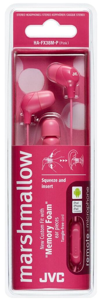 Наушники JVC Marshmallow HA-FX38M-P-E, розовые [HA-FX38M-P-E] информация: