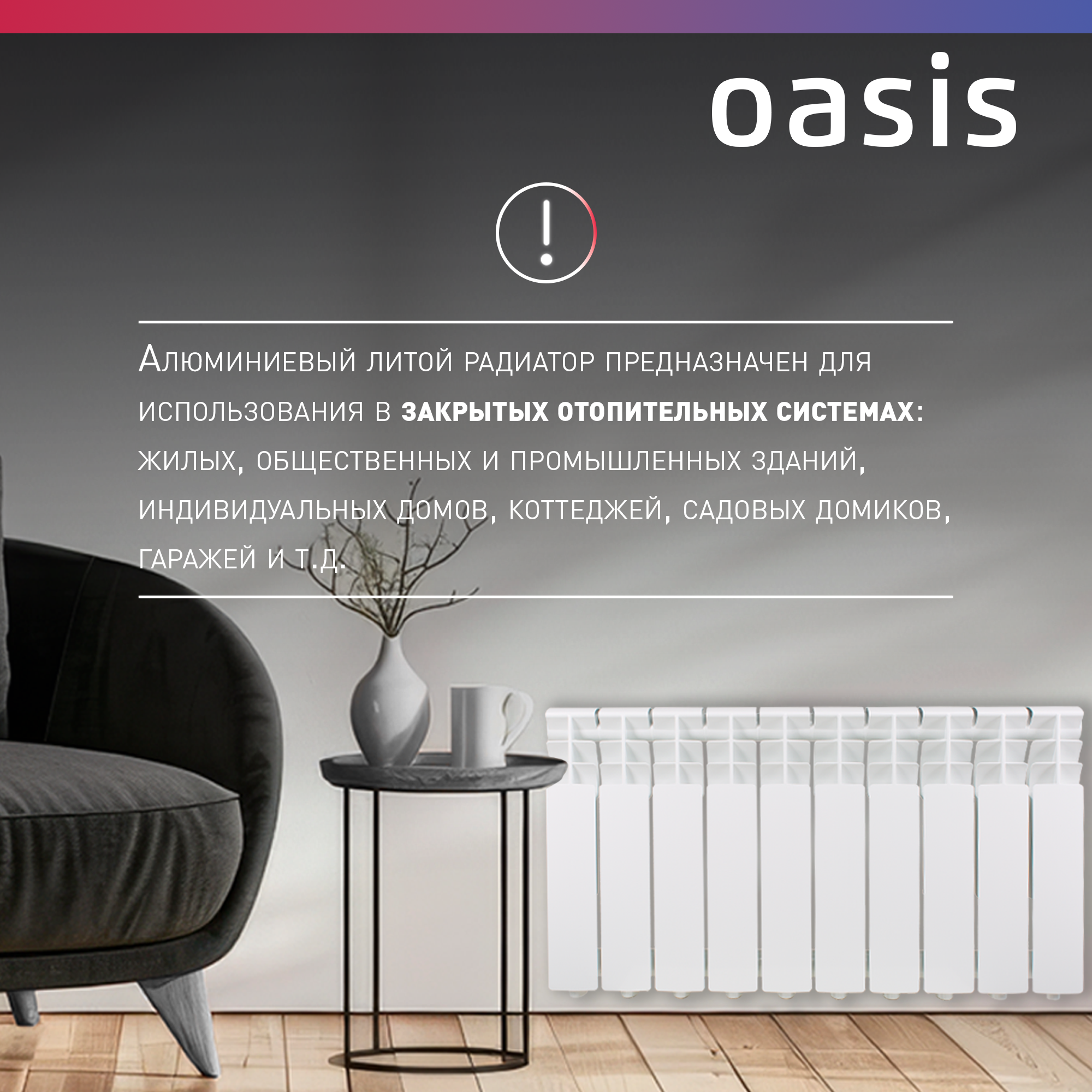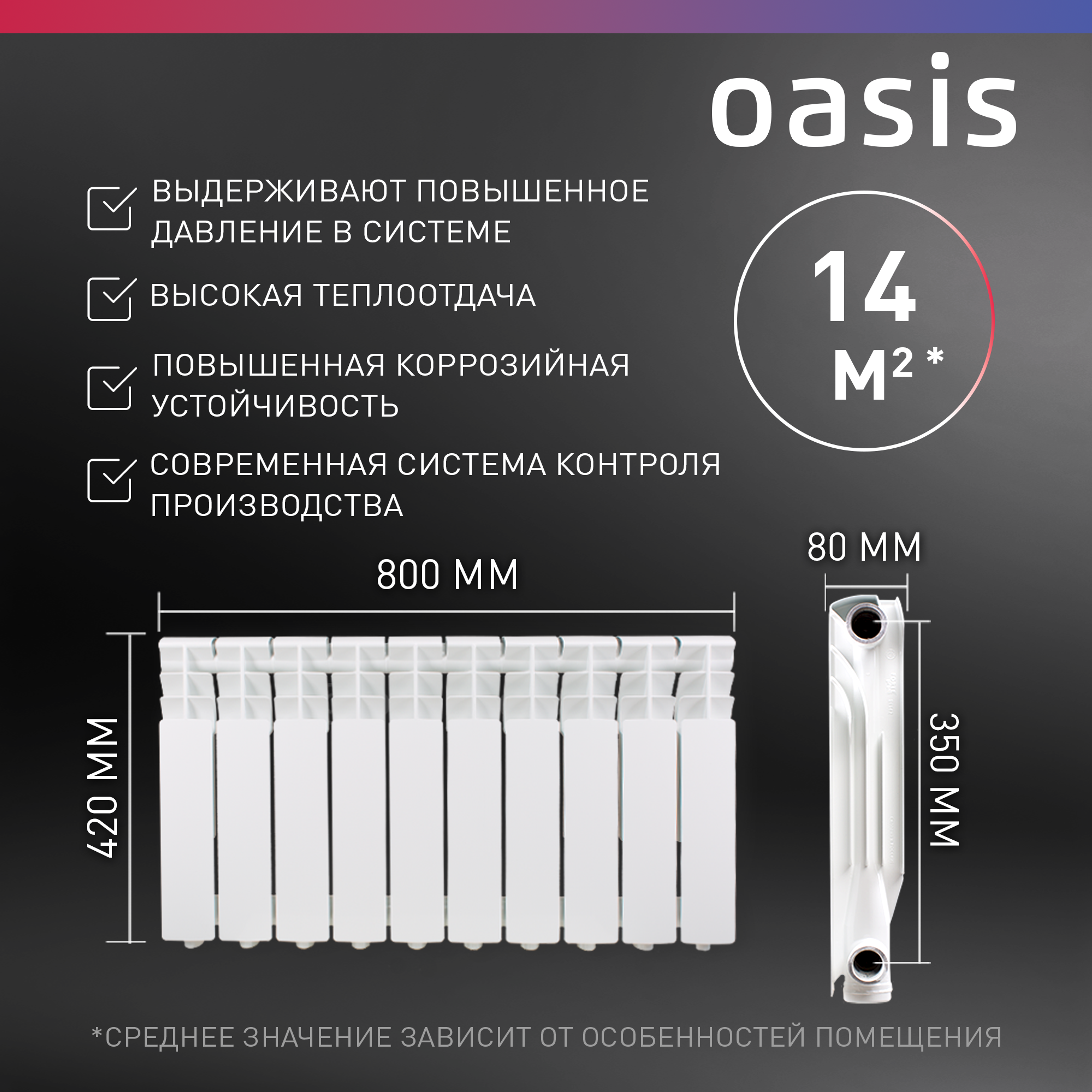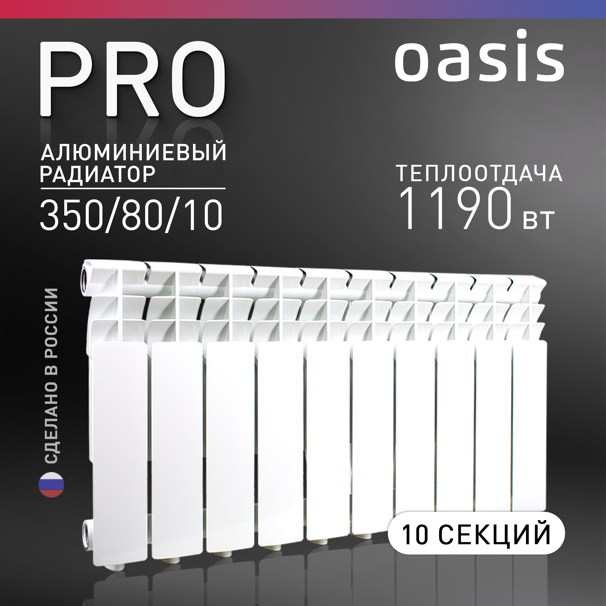 Радиатор отопления алюминиевый Oasis Pro 350/80/10, 10 секций информация: