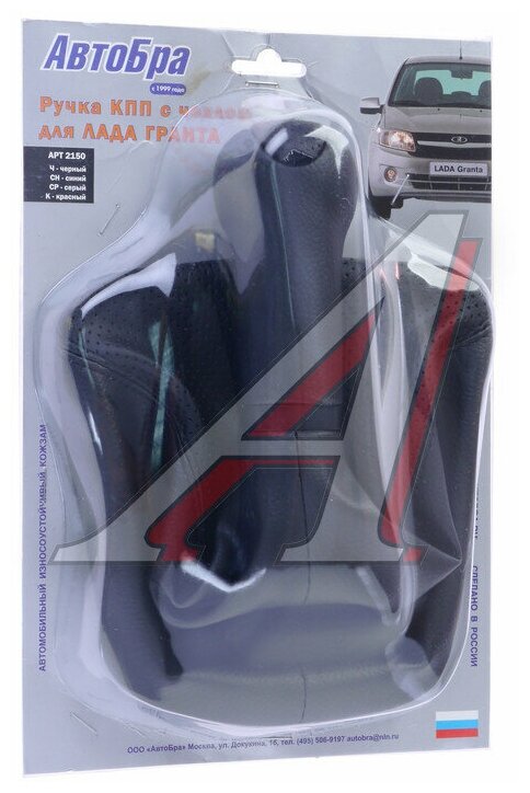Автобра 2150-Ч Ручка на рычаг КПП ВАЗ-2190 Гранта (11-) черная (кожзам) автобра