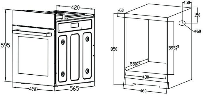 Духовой шкаф встраиваемый LEX EDM 077 C IV, 60 см, с конвекцией, механические ручки, объем 60 л, аналоговый таймер, телескопические направляющие.