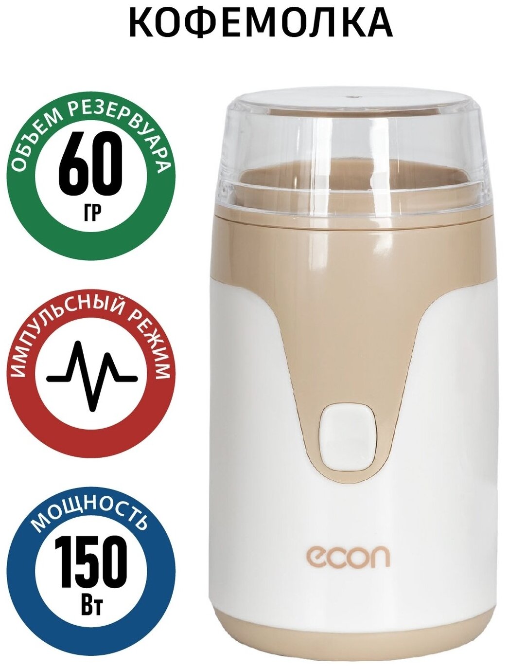 Кофемолка ECON ECO-1511CG (белый с бежевым, 60г, импульсный режим)