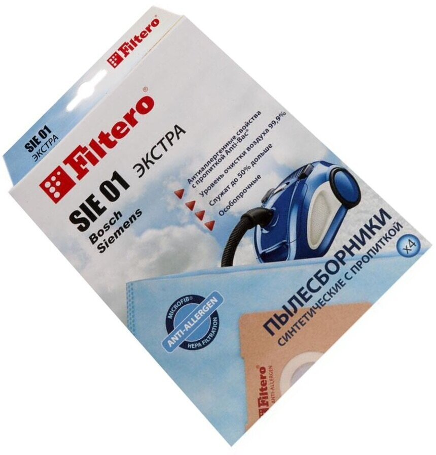 Мешки для пылесосов Siemens, Bosch, Filtero SIE 01 экстра (4 штуки) (PN: SIE 01). 850 ₽
