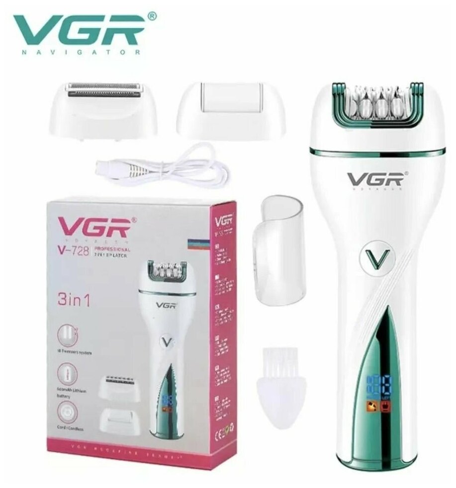 Эпилятор аккумуляторный женский, набор для ухода 3в1 VGR V-728